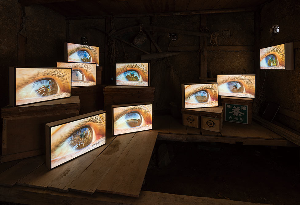 インクジェット出力した有名絵画の上に、スーパーマーケットのチラシ等から切り抜いたパーツを置き、俯瞰で撮影しています。今回はカメラ・オブスキュラを使って絵を描いたと言われるフェルメールをテーマにした新作をメインに、旧作も合わせて展示します。